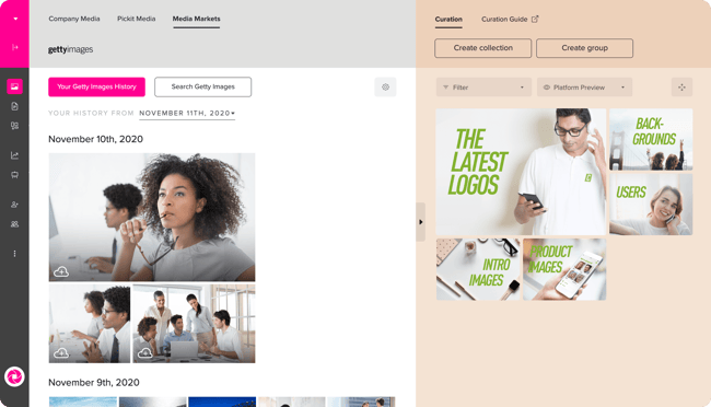 Media is available with both the Enterprise and Business Plans, but the Enterprise plan has some additional capabilities. This guide looks at the experience for both Enterprise and Business Plan admins. If you'd like to learn more about our different plans and pricing, please visit pickit.com/pricing.